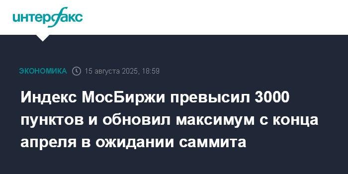 Москва. 15 августа. INTERFAX.RU - Российский рынок акций в пятницу вырос в ожидании встречи президентов России и США в Анкоридже на Аляске, что подогревает надежды на начало мирного урегулирования конфликта вокруг Украины.