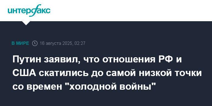 Москва. 16 августа. INTERFAX.RU - Отношения РФ и США скатились до самой низкой точки со времен "холодной войны", это не идет на пользу обеим странам и встреча лидеров назрела, заявил президент РФ Владимир Путин.