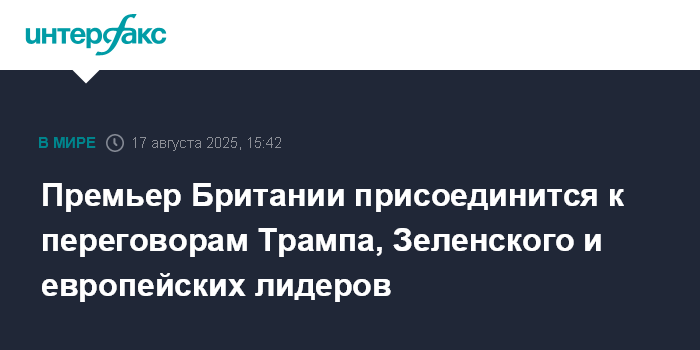 Премьер Британии присоединится к переговорам Трампа, Зеленского и европейских лидеров