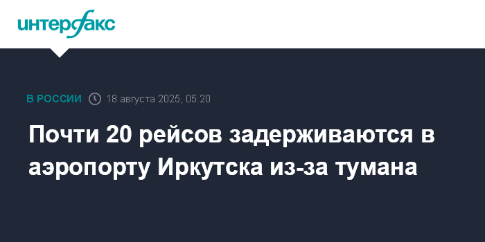 Москва. 18 августа. INTERFAX.RU - Прилет и вылет около 20 рейсов задерживается в понедельник в аэропорту Иркутска.