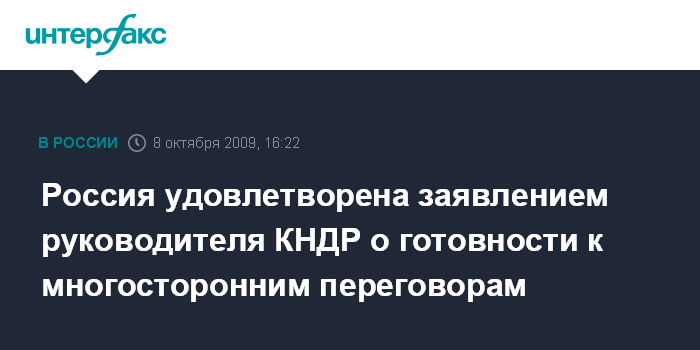 Россия удовлетворена заявлением руководителя КНДР о готовности к многосторонним переговорам