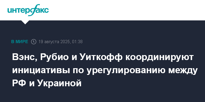 Вэнс, Рубио и Уиткофф координируют инициативы по урегулированию между РФ и Украиной