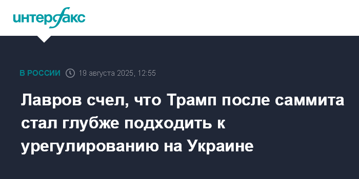 Москва. 19 августа. INTERFAX.RU - Российско-американский саммит на Аляске показал, что действующая администрация США нацелена на поиск долгосрочного и устойчивого урегулирования украинского кризиса, заявил глава МИД РФ Сергей Лавров.