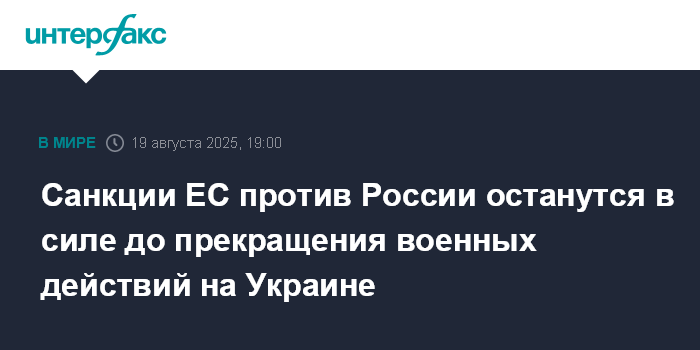 Санкции ЕС против России останутся в силе до прекращения военных действий на Украине