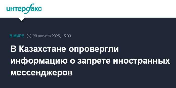 Москва. 20 августа. INTERFAX.RU - Министерство цифрового развития, инноваций и аэрокосмической промышленности Казахстана заявило, что никакого запрета на личное использование зарубежных мессенджеров в республике не вводится.
