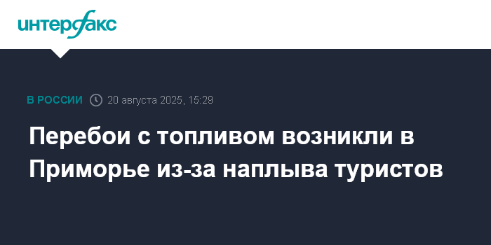Москва. 20 августа. INTERFAX.RU - Перебои с топливом возникли на автозаправках в Приморском крае из-за большого туристического потока, власти направили дополнительные бензовозы, сообщает пресс-служба краевого правительства в своем телеграм-канале в среду.
