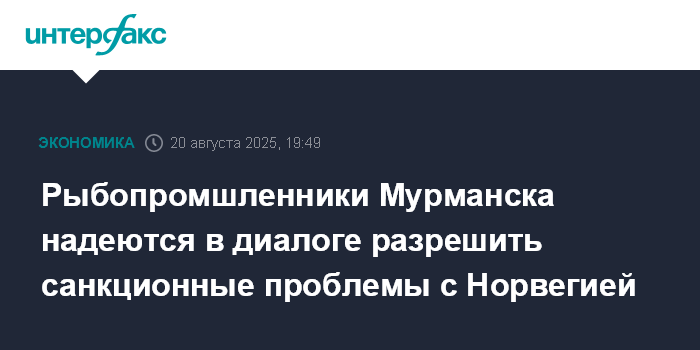 Москва. 20 августа. INTERFAX.RU - Рыбопромысловые компании "Мурман Сифуд" и "Норебо", попавшие под санкции Норвегии, а ранее - под санкции Евросоюза, рассчитывают на дипломатическое решение санкционных проблем.