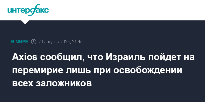 Axios сообщил, что Израиль пойдет на перемирие лишь при освобождении всех заложников
