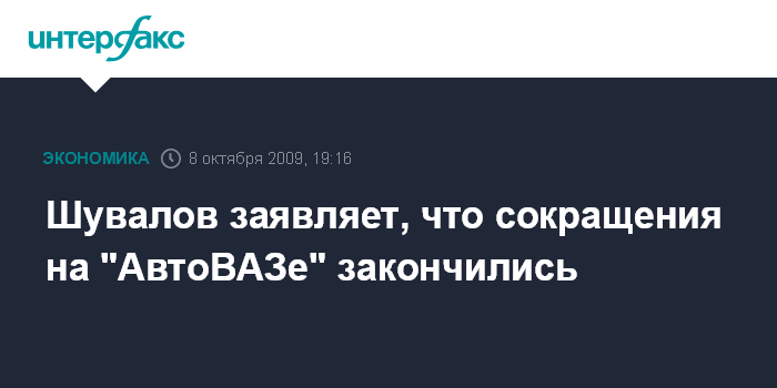 Тольятти. 8 октября. INTERFAX.RU - Первый вице-премьер правительства РФ Игорь Шувалов в ходе визита на АО "АвтоВАЗ" Заявил, что дальнейших сокращений на предприятии не будет.