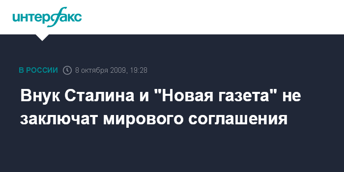 Внук Сталина и "Новая газета" не заключат мирового соглашения