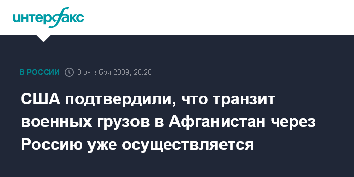 Москва. 8 октября. INTERFAX.RU - Американская сторона уже воспользовалась договоренностями с Россией о воздушном транзите военных грузов в Афганистан через российскую территорию, заявил посол США в Москве Джон Байерли.