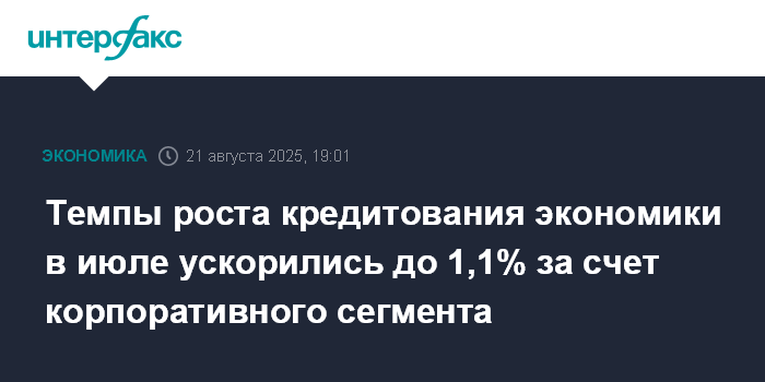 Темпы роста кредитования экономики в июле ускорились до 1,1% за счет корпоративного сегмента