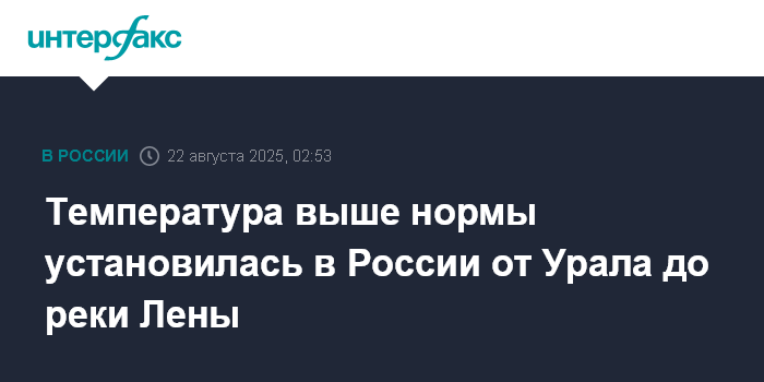 Москва. 22 августа. INTERFAX.RU - Температура выше нормы прогнозируется в ближайшие дни во всем Сибирском федеральном округе и на Урале, ниже нормы - в регионах Северо-Западного и Центрального федеральных округов, сообщил "Интерфаксу" научный руководитель Гидрометцентра России Роман Вильфанд.