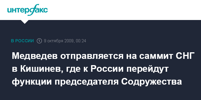 Медведев отправляется на саммит СНГ в Кишинев, где к России перейдут функции председателя Содружества