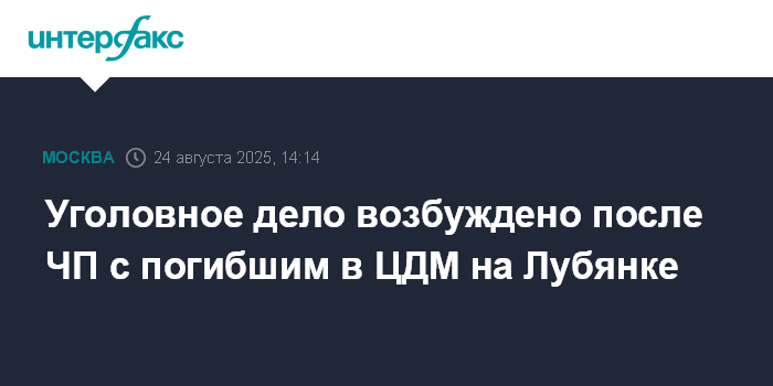 Москва. 24 августа. INTERFAX.RU - Следственный комитет РФ сообщил о возбуждении уголовного дела после инцидента в Центральном детском магазине (ЦДМ) на Лубянке.