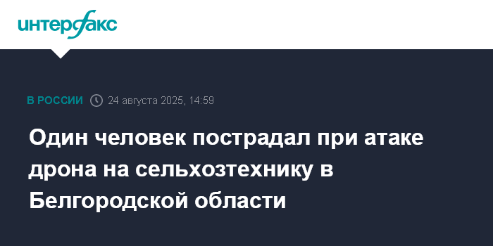 Один человек пострадал при атаке дрона на сельхозтехнику в Белгородской области