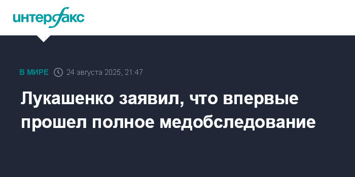 Москва. 24 августа. INTERFAX.RU - Президент Белоруссии Александр Лукашенко заявил, что впервые прошел полное медицинское обследование, результаты которого его порадовали.