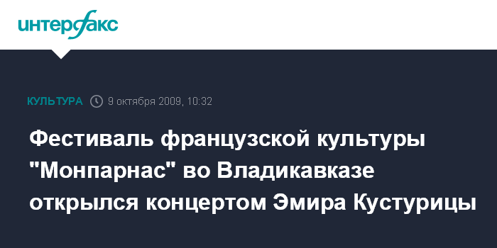Москва. 9 октября. INTERFAX.RU - Знаменитый сербский режиссер Эмир Кустурица и его культовая группа "The No Smoking Orchestra" в четверг вечером впервые дали концерт во Владикавказе, которым был дан старт фестивалю французской культуры "Монпарнас". "Это, без преувеличения, сенсационное событие, которое навсегда запомнится музыкальным гурманам Северной Осетии. Первый и единственный концерт Э.Кустурицы и его группы во Владикавказе прошел при полном аншлаге", - сообщил агентству "Интерфакс-Юг" руководитель пресс-службы постоянного представительства Северной Осетии при президенте РФ Ирбек Доев. По его словам, в пятницу Кустурица встретится с поклонниками и журналистами, после чего режиссер намерен побывать в Южной Осетии, о которой планирует снять фильм.