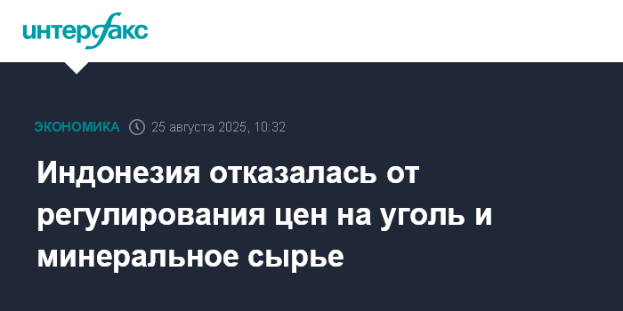 Москва. 25 августа. INTERFAX.RU - Власти Индонезии отказались от регулирования минимального уровня цен на уголь и минеральное сырье, сообщает Bloomberg со ссылкой на министерское постановление от 8 августа.