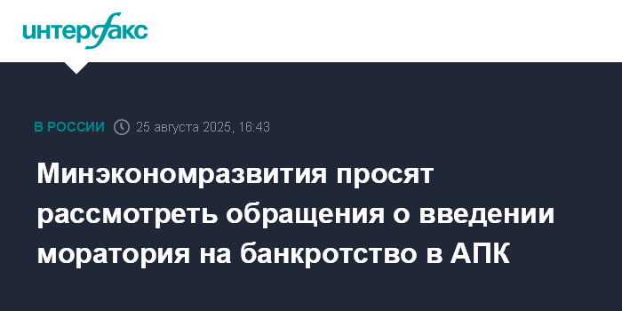 Минэкономразвития просят рассмотреть обращения о введении моратория на банкротство в АПК