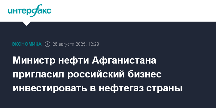 Министр нефти Афганистана пригласил российский бизнес инвестировать в нефтегаз страны