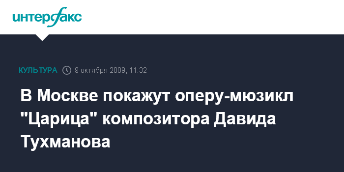 В Москве покажут оперу-мюзикл "Царица" композитора Давида Тухманова