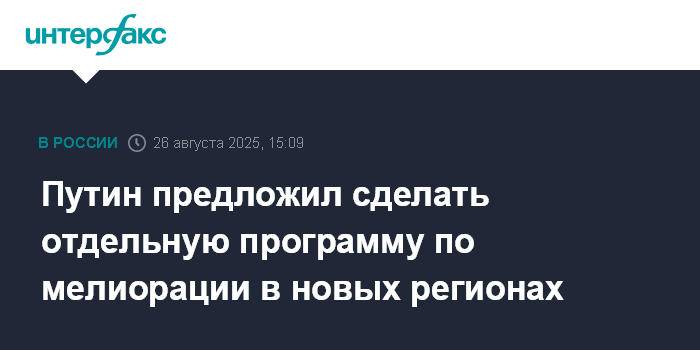 Москва. 26 августа. INTERFAX.RU - Аграрный комплекс новых регионов России в этом году сильно пострадал от засухи в отсутствии мелиорации, сообщил губернатор Херсонской области Владимир Сальдо на встрече с президентом РФ Владимиром Путиным. Путин высказал мнение, что новым регионам нужна отдельная программа по мелиорации.