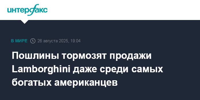 Москва. 26 августа. INTERFAX.RU - Даже самые состоятельные клиенты откладывают покупки спортивных автомобилей из-за неопределенности с импортными пошлинами в США, заявил главный исполнительный директор Lamborghini Штефан Винкельманн.