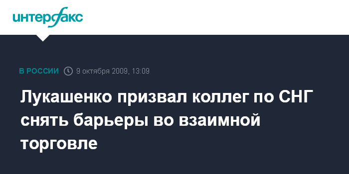 Лукашенко призвал коллег по СНГ снять барьеры во взаимной торговле