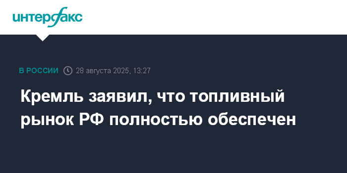Кремль заявил, что топливный рынок РФ полностью обеспечен