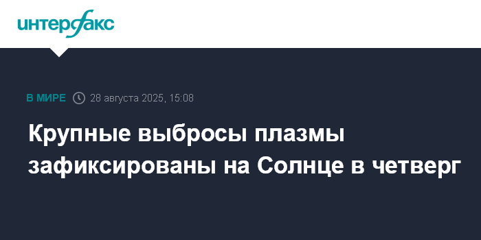 Москва. 28 августа. INTERFAX.RU - Крупные выбросы плазмы наблюдаются в северном полушарии Солнца с утра четверга, угрозы для Земли нет. Об этом сообщили в лаборатории солнечной астрономии Института космических исследований (ИКИ) и Института солнечно-земной физики (ИСЗФ) РАН.