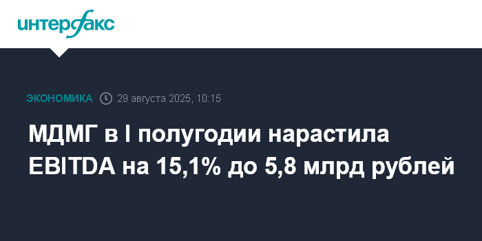 Москва. 29 августа. INTERFAX.RU - МКПАО "МД Медикал Груп" (ГК "МД Медикал", МДМГ) в I полугодии 2025 года нарастило показатель EBITDA на 15,1% по сравнению с аналогичным периодом 2024 года - до 5,8 млрд рублей, говорится в сообщении компании.