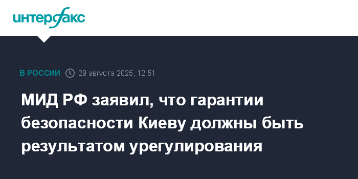 МИД РФ заявил, что гарантии безопасности Киеву должны быть результатом урегулирования