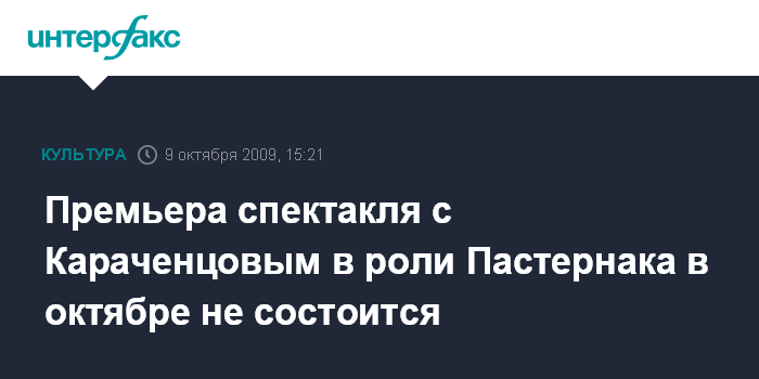 Премьера спектакля с Караченцовым в роли Пастернака в октябре не состоится