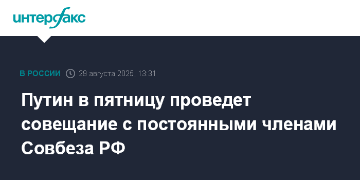Москва. 29 августа. INTERFAX.RU - Президент РФ Владимир Путин в пятницу проведет совещание с постоянными членами Совбеза РФ, сообщил его пресс-секретарь Дмитрий Песков.
