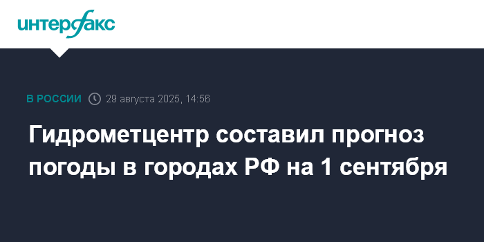 Гидрометцентр составил прогноз погоды в городах РФ на 1 сентября