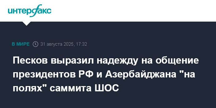 Песков выразил надежду на общение президентов РФ и Азербайджана "на полях" саммита ШОС