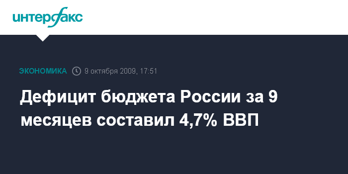 Дефицит бюджета России за 9 месяцев составил 4,7% ВВП