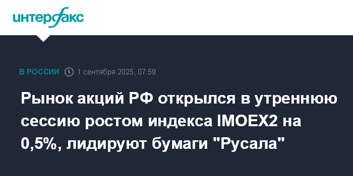 Рынок акций РФ открылся в утреннюю сессию ростом индекса IMOEX2 на 0,5%, лидируют бумаги "Русала"