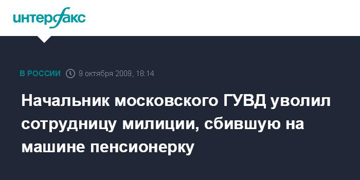 Начальник московского ГУВД уволил сотрудницу милиции, сбившую на машине пенсионерку