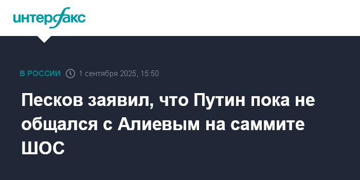 Песков заявил, что Путин пока не общался с Алиевым на саммите ШОС