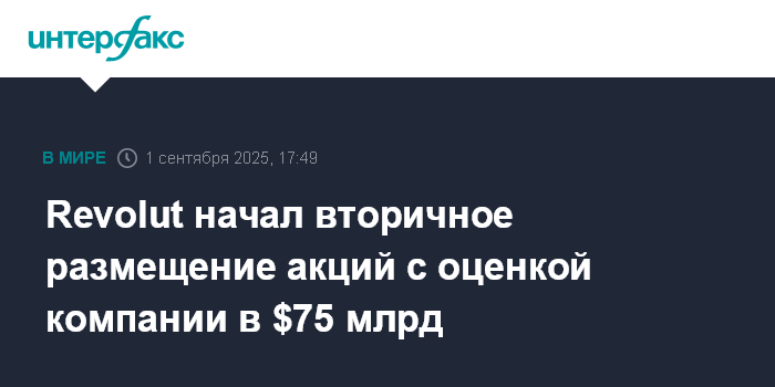 Revolut начал вторичное размещение акций с оценкой компании в $75 млрд