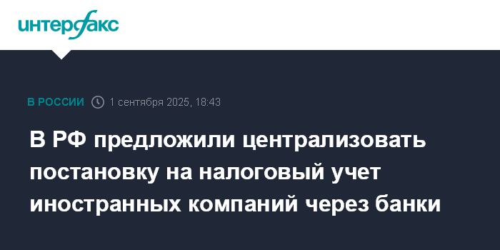 В РФ предложили централизовать постановку на налоговый учет иностранных компаний через банки