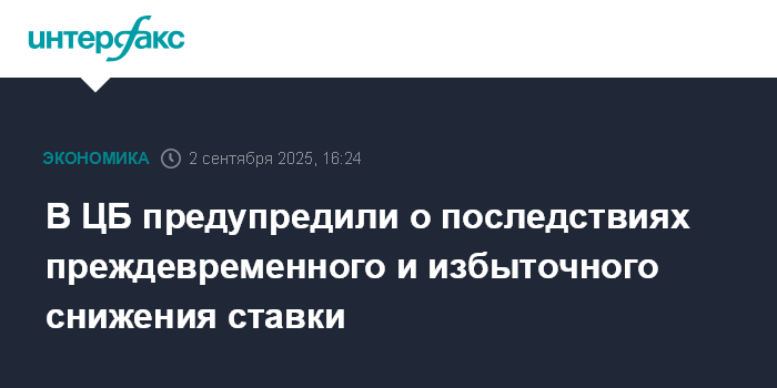 В ЦБ предупредили о последствиях преждевременного и избыточного снижения ставки