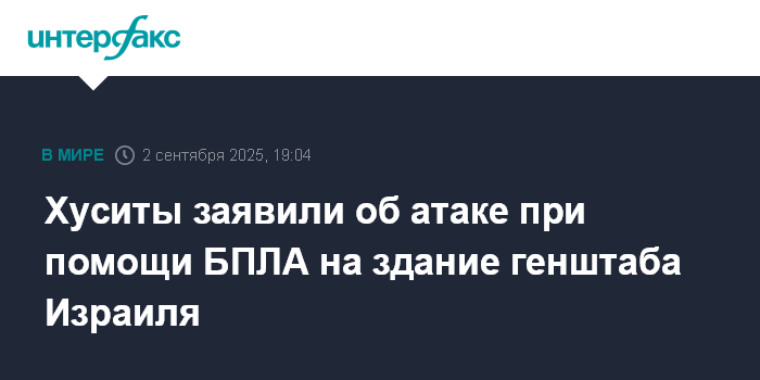 Москва. 2 сентября. INTERFAX.RU - Хуситы выступили с утверждением во вторник, что нанесли удары по объектам в Израиле, включая генеральный штаб Армии обороны страны (ЦАХАЛ).