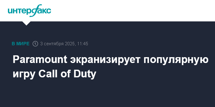 Москва. 3 сентября. INTERFAX.RU - Американский медиахолдинг Paramount Skydance (бывший Paramount Global) снимет художественный фильм на основе популярной игровой франшизы Call of Duty, которую выпускает Activision Blizzard.
