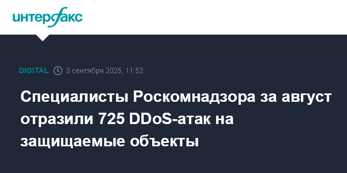 Специалисты Роскомнадзора за август отразили 725 DDoS-атак на защищаемые объекты