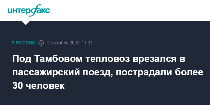 Москва. 10 октября. INTERFAX.RU - В пассажирский поезд, следовавший по маршруту Москва-Тамбов, врезался тепловоз, пострадали несколько десятков человек, сообщил "Интерфаксу" по телефону очевидец происшествия.
