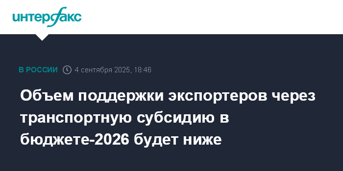 Объем поддержки экспортеров через транспортную субсидию в бюджете-2026 будет ниже