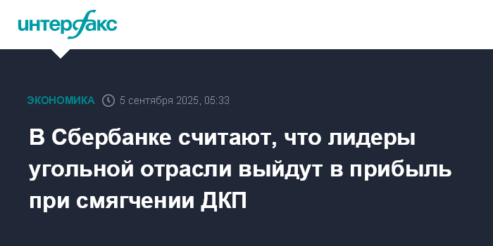 Москва. 5 сентября. INTERFAX.RU - Лидеры угольной отрасли выйдут в прибыль при смягчении денежно-кредитной политики (ДКП), ослаблении курса нацвалюты до 95 рублей за доллар США и восстановлении цен на сырье, считает Сбербанк.